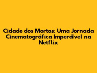 Assistindo Cidade dos Mortos na Netflix: Onde e Como