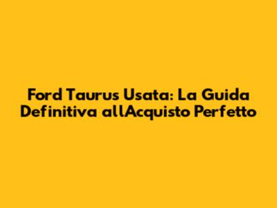 Ford Taurus Usata: Guida All'Acquisto Perfetta
