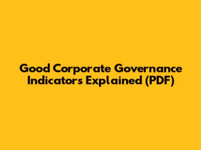 Good Corporate Governance Indicators Explained (PDF)