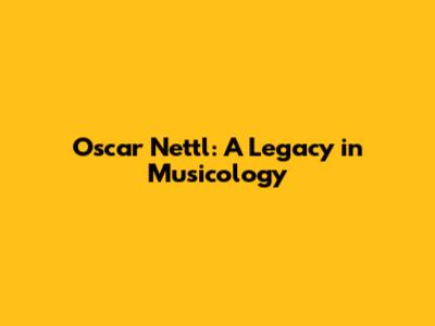 Oscar Nettl: A Legacy In Musicology